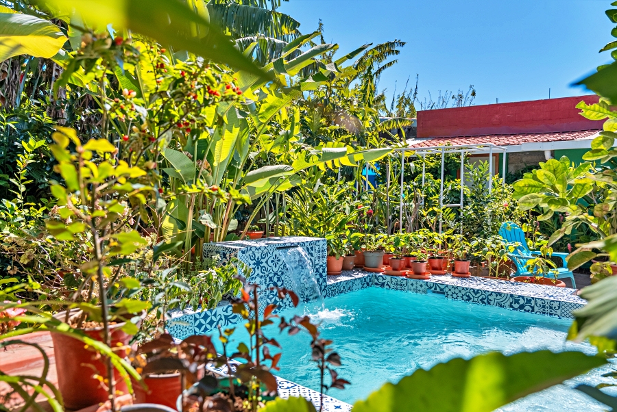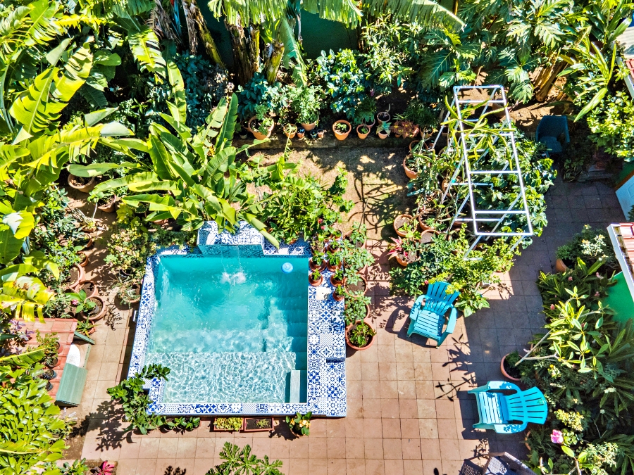 The main home features 2 spacious bedrooms and 2 bathrooms. In addition, vaulted ceilings and an open & concept great room fill the space with natural light. The design supports both relaxation and entertaining. As a result, the home opens to a landscaped backyard with a sparkling pool, creating a private, garden-like retreat.